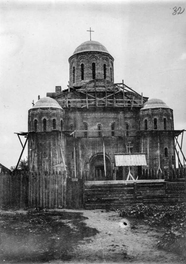 На світлинах зафіксовано церкву Св. Василя Великого в риштуванні під час її реставрації (1908-1912) за проектом арх. О. Щусєва [За метод реставрації храму, його наукову новизну й оригінальність архітектор-художник О. Щусев отримав звання академіка архітектури], розробленим на основі досліджень, проведених у 1907-1908 роках академіком архітектури П. Покришкіним та архітекторами О. Весніним і В. Максимовим [У загальновідомих наукових текстах, де згадуються роботи з дослідження чи відновлення церкви Св. Василя в Овручі, причетність архітектора Б. Реріха до цих робіт не зафіксована]. У виданні 1869 р. пам’ятку описано й позначено на схематичному плані центральної частини м. Овруча як руїни собору Св. Василя Великого [Памятники русской старины в западных губерниях империи, издаваемые по Высочайшему повелению П. Н. Батюшковым. С.Пб., 1869. – Вып. 3, 4.]. Історія побудови й реконструкції церкви має велику бібліографію14. Ця культова будівля занесена до пам’яток культурної спадщини національного значення (охор. № 158) під назвою “Василівська церква Василівського монастиря, близько 1190, 1909 рр., та монастирські споруди, 1907-1909 рр.” [Марія Гончаренко Коментар до світлин архітектурних об’єктів Волині з архіву Бориса Реріха (10.11.2019 р.) ]