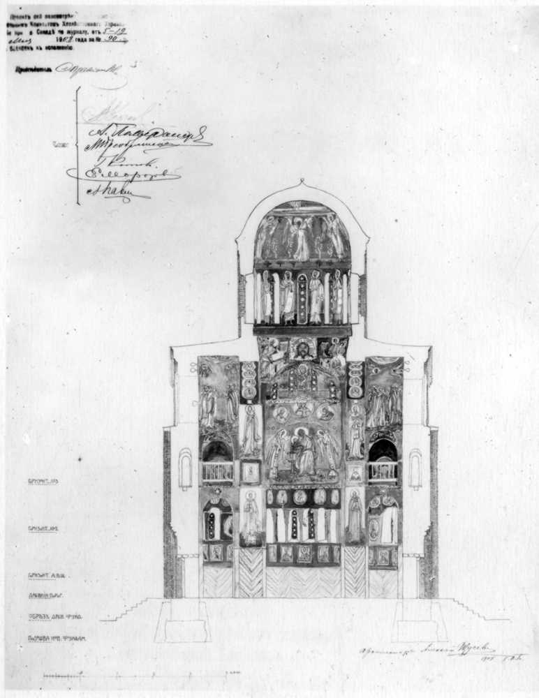 Проект реставрації : розріз. З ескізними рисунками стінопису.