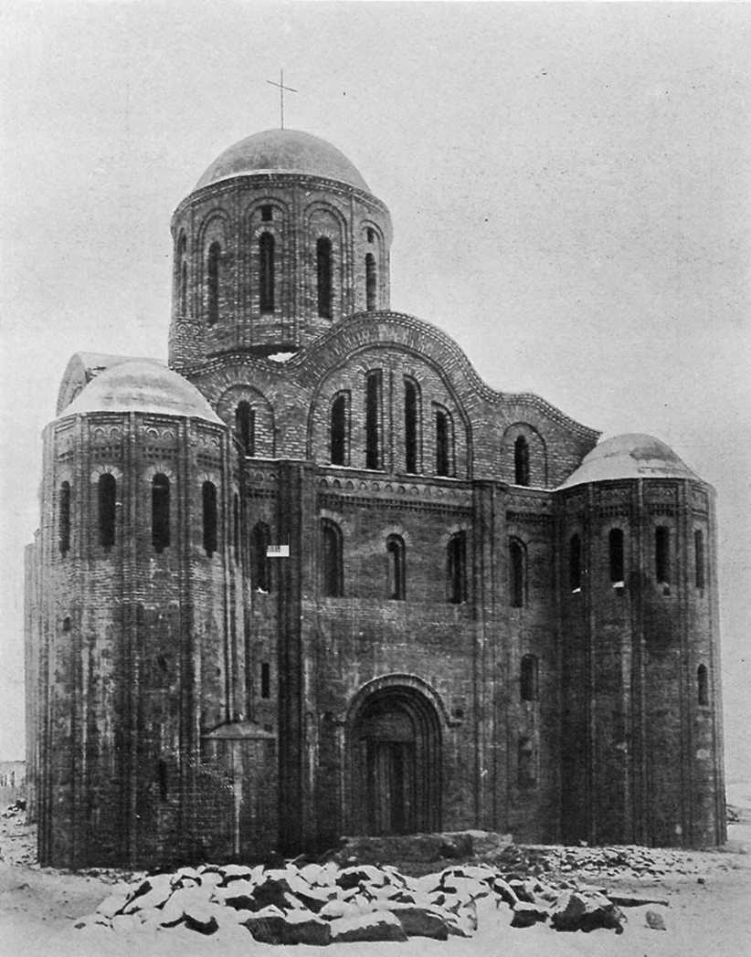 Фото з журналу “Ежегодник общества архитекторов-художников 1912” . Показує храм, коли відбудова закінчена, але благоустрій території ще тривав.