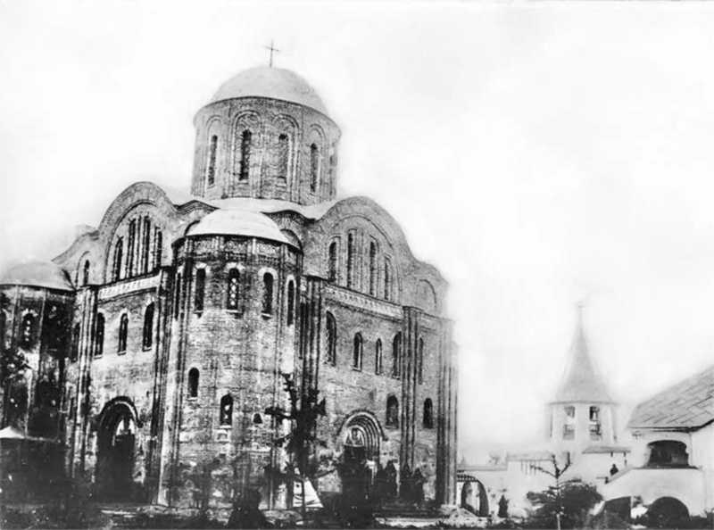 1910-і рр. (?) Загальний вигляд з південного заходуРозмір зображення: 800:594 піксел Фото невідомого часу, після реставрації 1908 р., але ще до більшовиків (хрест на купоі стоїть) |