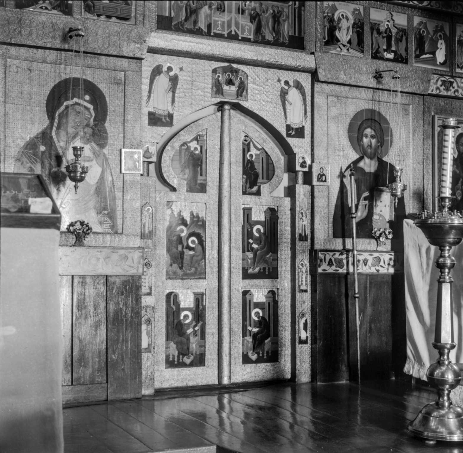 1988 р. Фрагмент іконостаса з царськими вратамиРозмір зображення: 1561:1528 піксел Із серії «Архітектура Овруча у 1988 році на світлинах Олександра Ранчукова» (опубліковано 15.12.2020) |