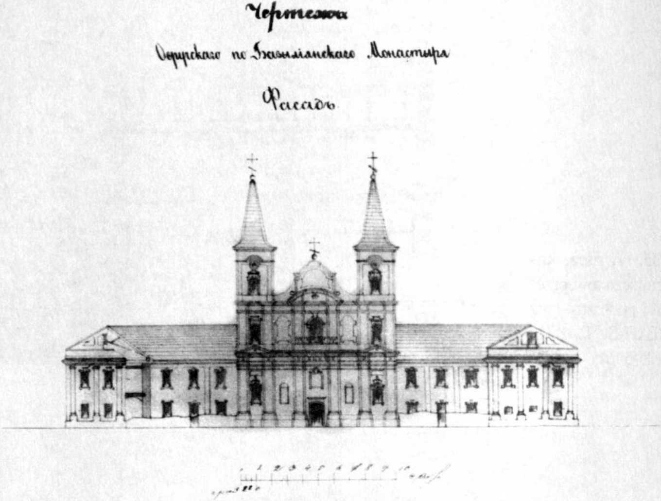 [3 чв. 19 ст.?] Головний фасад костелу та келій Розмір зображення: 1360:1032 піксел Вкладені елементи Фасад костелу і келій