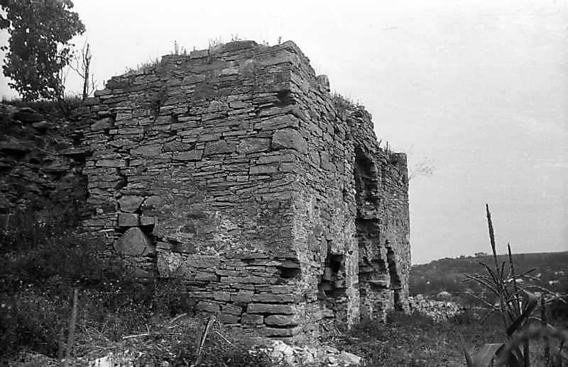 1996 р. Надбрамна башта. Вигляд з боку поля в ракурсіРозмір зображення: 800:518 піксел 1996 р. 8 липня. Фото М.І.Жарких. Негатека, № 886-25. |