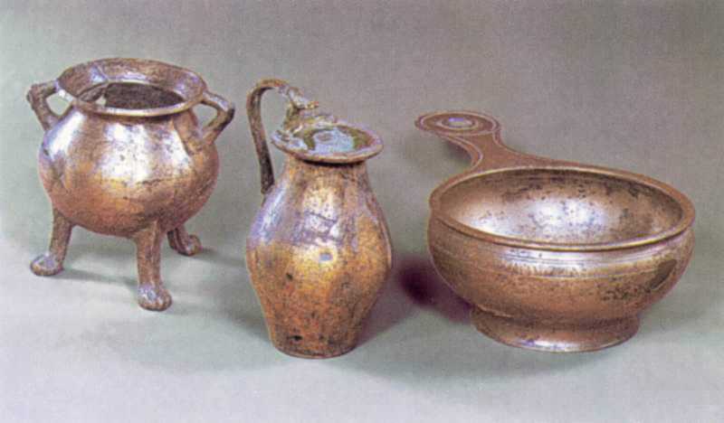 Загальний виглядРозмір зображення: 800:468 піксел Бронзовий позолочений посуд (І – II ст. н. е., Ольвія). Джерело: Історія української культури. – К.: 2001 р., т. 1, с. 419. |