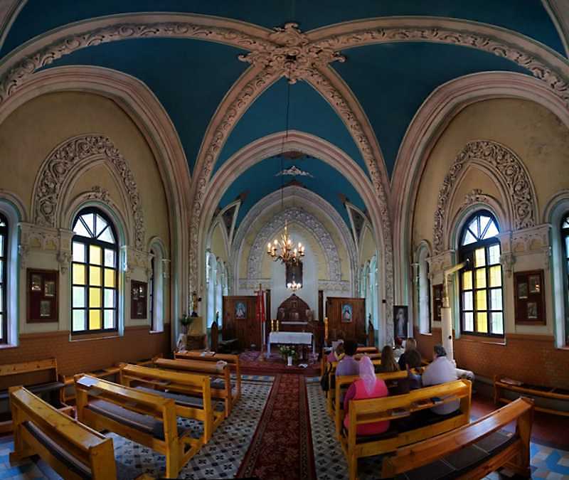 2019 р. Інтер’єр з видом на вівтарРозмір зображення: 800:675 піксел Фото з ФБ групи «Ukraina Incognita» (опубліковано 14.05.2019 р.) |
