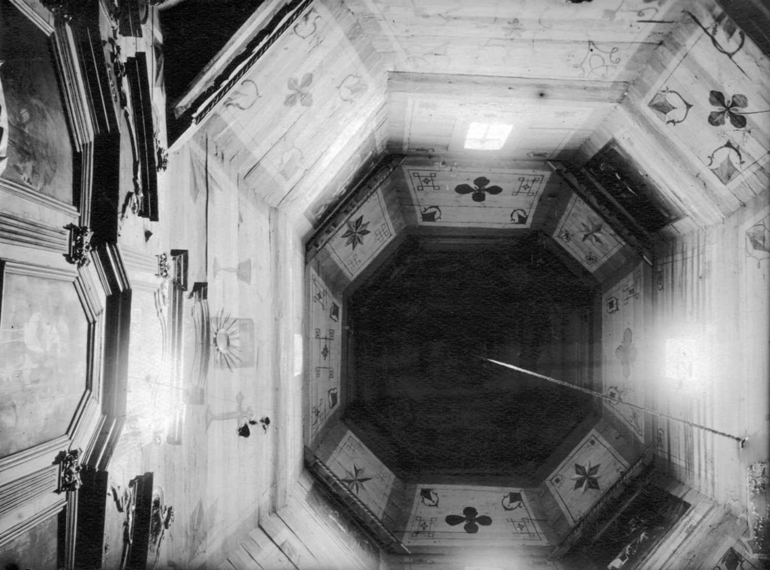 1920-і рр. (?) Інтер’єр верхуРозмір зображення: 1500:1111 піксел Фото Стефана Таранушенка і Павла Жолтовського з експедиції Харківського музею українського мистецтва. 1920-і рр. (?) Опубліковано 17.04.2021 р. |
