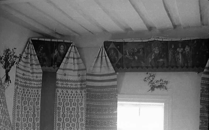 1976 р. Інтер’єр хати – ікониРозмір зображення: 800:497 піксел 1976 р. 30 травня. Фото М.І.Жарких. Негатека, № A125-24. |