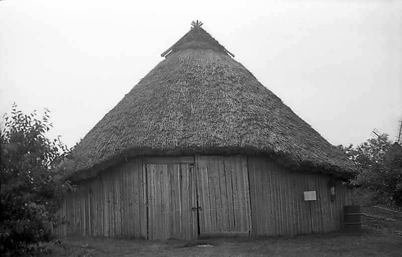 Клуня збудована у сер. 19 ст. у с.Петрівці Миргородського району Полтавської обл. Стіни низькі, дах високий, конусоподібний. Збудована на 4 сохах, закопаних на рогах квадрату. На них покладено горизонтальні балки-зв’язі.