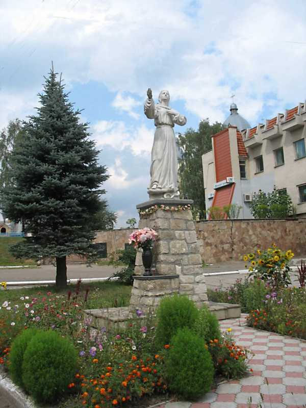 Скульптура «Непорочне зачаття»Розмір зображення: 600:800 піксел Фото Зенона Боровця і Богдана Тхора, 9 серпня 2012 р. Праворуч – Народний дім, за ним – ліхтарик церкви св. Володимира. |