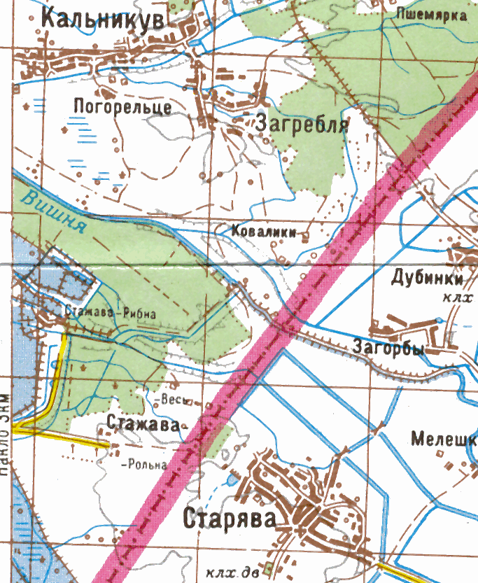 Карта (Стажава)Розмір зображення: 683:833 піксел Карта Київської військово-картографічної фабрики, масштаб 1:100000, аркуш 89, друк 2000 р. (за матеріалами 2000 р.). |
