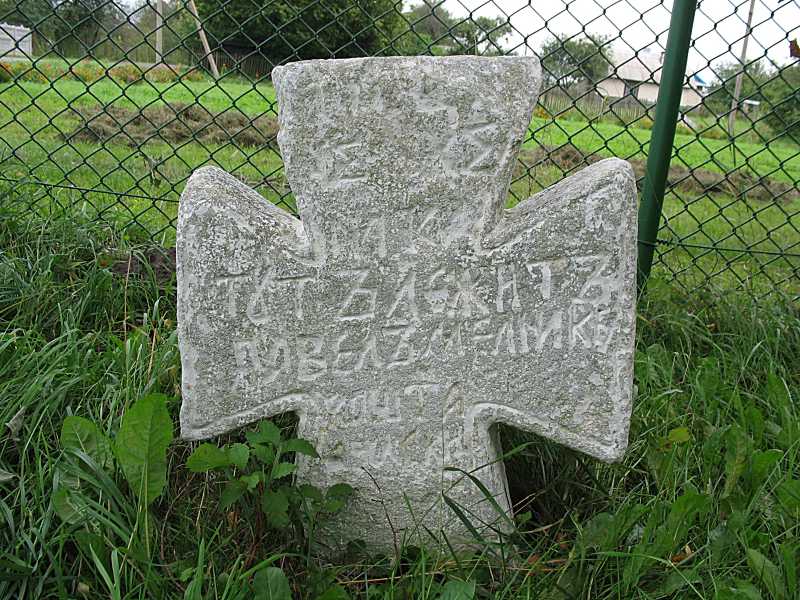 Надгробний хрест Павла МельникаРозмір зображення: 800:600 піксел Фото Зенона Боровця і Богдана Тхора, 7 вересня 2006 р. Напис: «Тут лежить Павло Мельник» [нижче, мабуть, дата – погано видно]. |