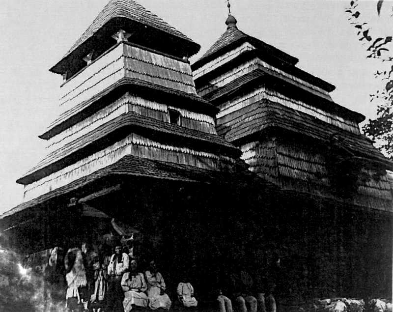 Перехресний. Церква Введення пр. богородиці, 1641 р. Розібрана в 1967 р. Світлина початку XX ст. Бібліотека Музею етнографії та художнього промислу у Львові, № 13 315.