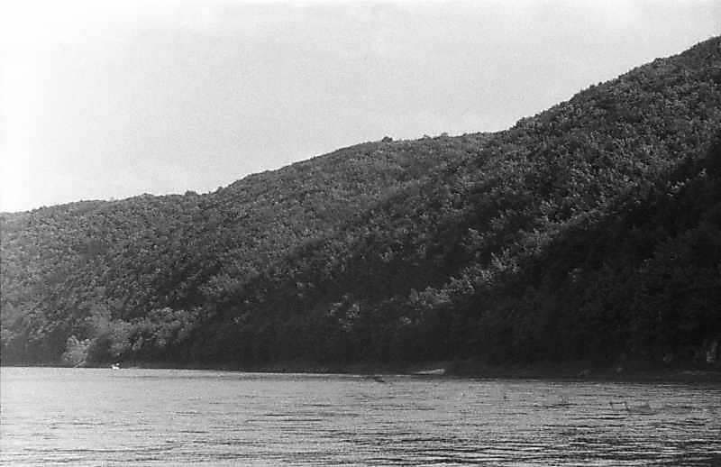 1988 р. Вид правого берега Дністра між Устям-Зеленим і ПетриловимРозмір зображення: 800:518 піксел 1988 р. 14 червня. Фото М.І.Жарких. Негатека, № 393-26. |