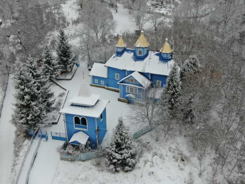 Аерофото церкви і дзвіниці 10 січня 2022 р. За нього ми вдячні представнику Підгірцівського старостинського округу.