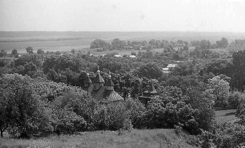 1987 р. Загальний вигляд з північного заходу на тлі заплави ДніпраРозмір зображення: 800:485 піксел 1987 р. 14 червня. Фото М.І.Жарких. Негатека, № 331-38. |