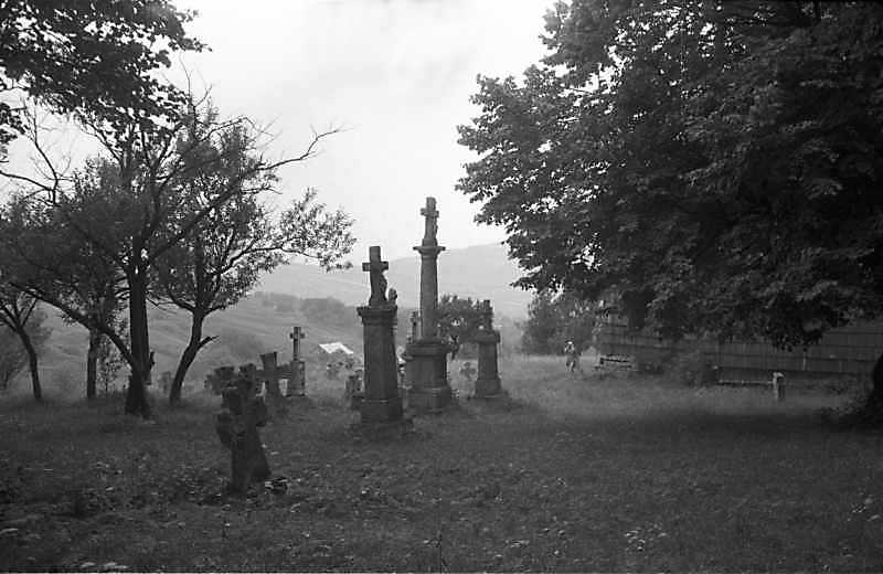 1988 р. Цвинтар біля церквиРозмір зображення: 800:520 піксел 1988 р. 16 серпня. Фото М.І.Жарких. Негатека, № 464-32. |