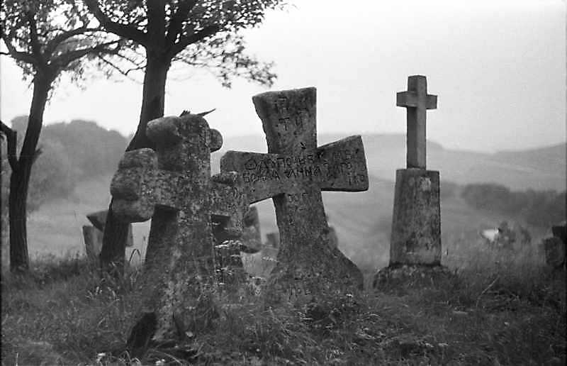 1988 р. Цвинтар біля церквиРозмір зображення: 800:516 піксел 1988 р. 16 серпня. Фото М.І.Жарких. Негатека, № 465-14. |