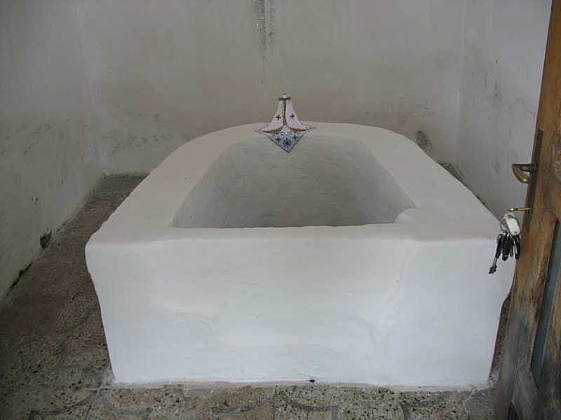 Чаша джерела в каплиці Розмір зображення: 800:600 піксел Фото Зенона Боровця, 9 травня 2007 р. Попередня сторінка | Вище | Наступна сторінка