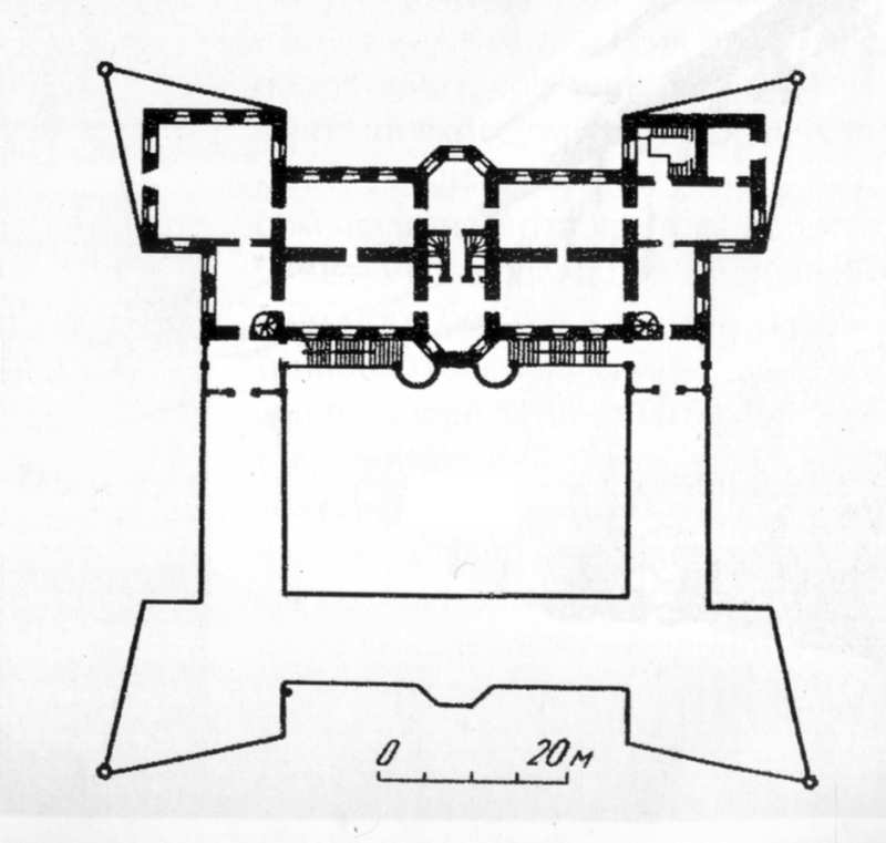 План першого поверхуРозмір зображення: 800:761 піксел Джерело: Чобіт Д. Підгірці: історико-архітектурна перлина України.- Броди: Просвіта, 1998 р., c. 28. |