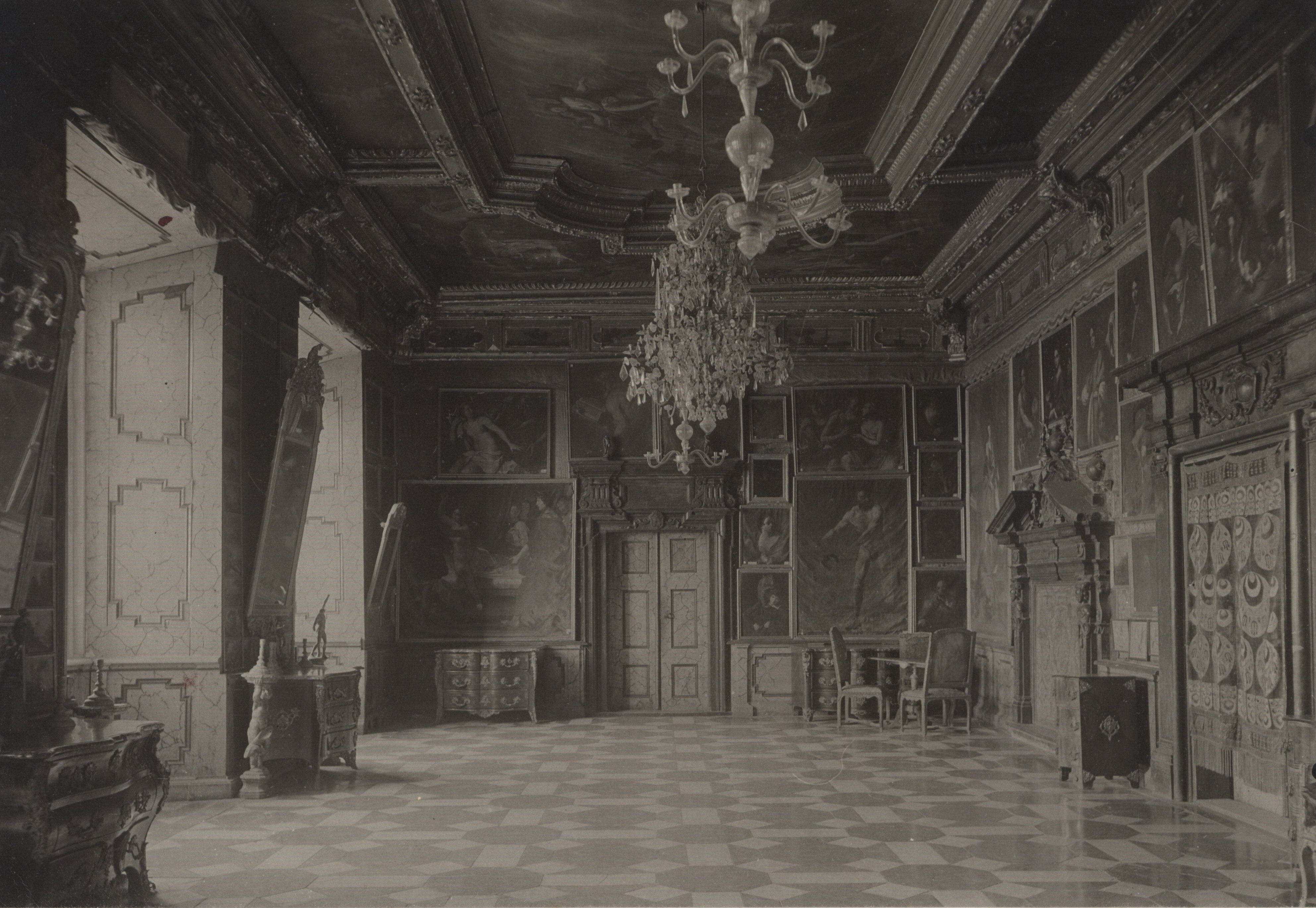 1910 р. Інтер’єр Кармазинового залуРозмір зображення: 3970:2739 піксел Зі статті Володимира Прокопова «Інтер’єр, який ви ніколи не побачите. Унікальні фотографії залів Підгорецького замку» (1 червня 2017 р.) |