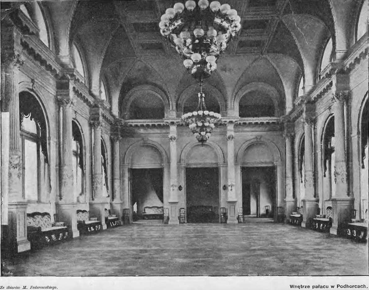 Поч. 20 ст. Інтер’єр бального залуРозмір зображення: 1190:937 піксел Бальний зал знаходиться на третьому поверсі західної башти. |