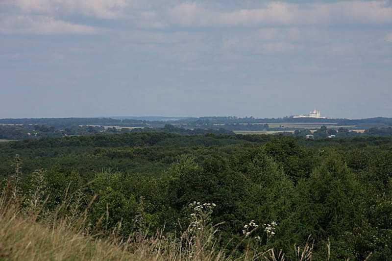 Вид на Почаївський монастир із заходу від кляштору в Підкамені. Фото Зенона Боровця і Богдана Тхора, 10 серпня 2011 р.