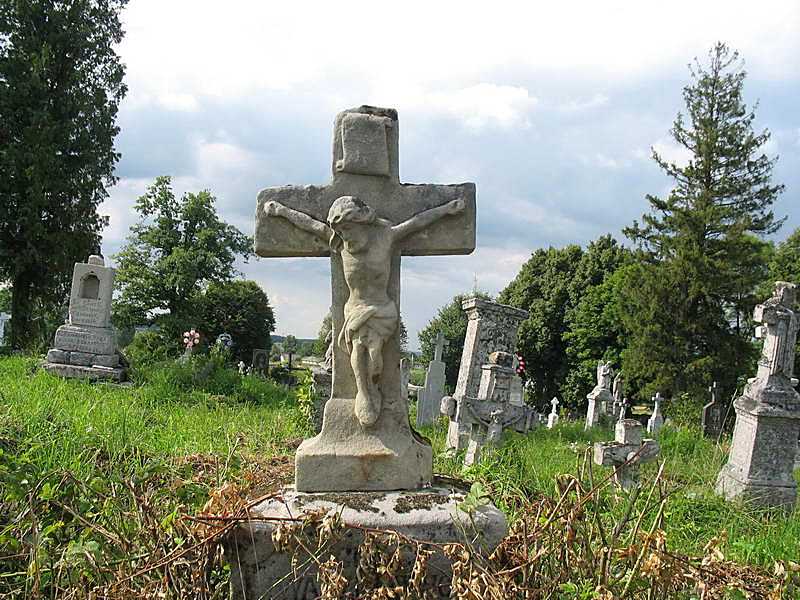 2011 р. Надгробок із розп’яттямРозмір зображення: 800:600 піксел Лівруч – могила В. Обушинського. Фото Зенона Боровця і Богдана Тхора, 10 серпня 2011 р. |