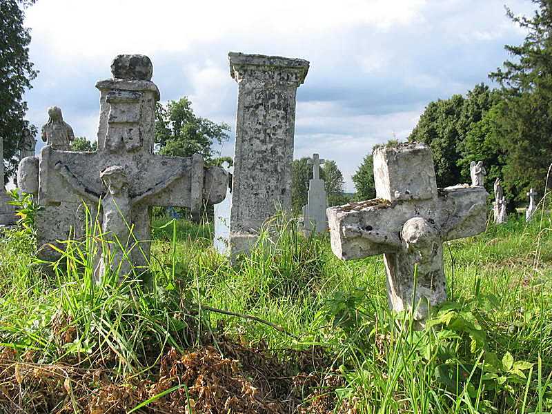 2011 р. Два надгробки із розп’яттямиРозмір зображення: 800:600 піксел Фото Зенона Боровця і Богдана Тхора, 10 серпня 2011 р. |
