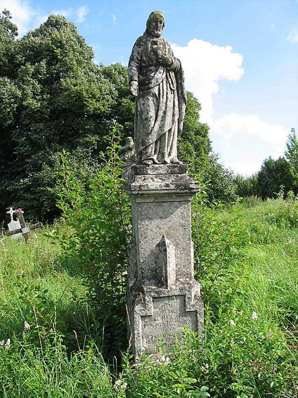2011 р. Могила Евеліни КовальовоїРозмір зображення: 600:800 піксел Фото Зенона Боровця і Богдана Тхора, 10 серпня 2011 р. Напис: «Tu poczywa Ewelina Kowaliowa [?] + 30 pazdziernika 1909. W [7?]4-tym roku życia. Boże badź miłościwy jej duszy». |