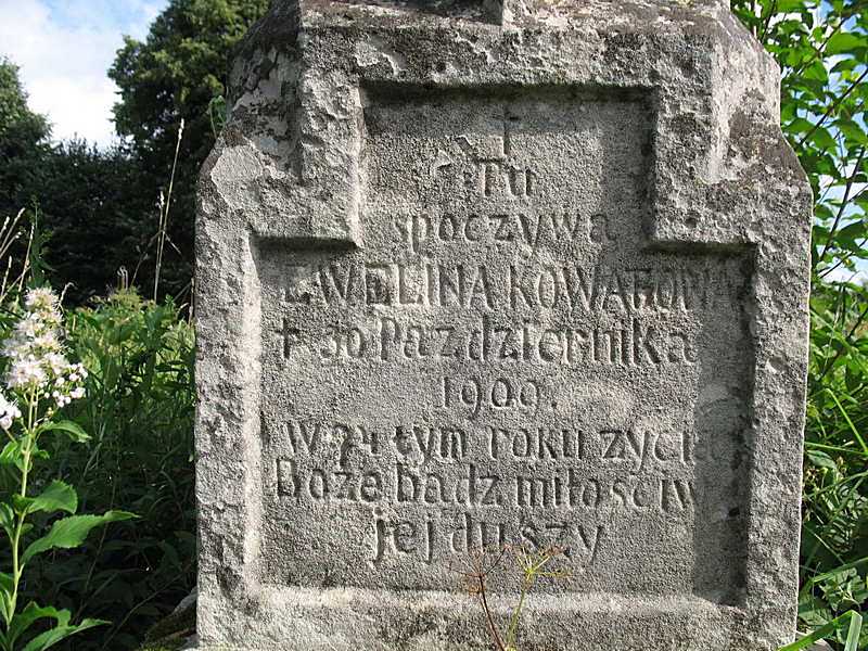 Напис на могилі Е. КовальовоїРозмір зображення: 800:600 піксел Фото Зенона Боровця і Богдана Тхора, 10 серпня 2011 р. |