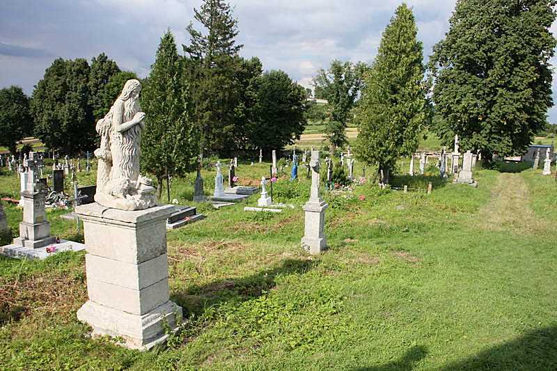 2011 р. Нагробок з постаттю св. Онуфрія на тлі цвинтаряРозмір зображення: 800:533 піксел Фото Зенона Боровця і Богдана Тхора, 10 серпня 2011 р. |