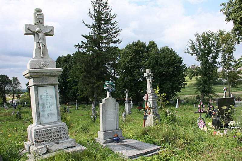 На цоколі: «O Jezu synu Ojca przedwiecznego, przytul nas dzieci do serca swoiego». [Здається, цоколь давніший від поховання.]