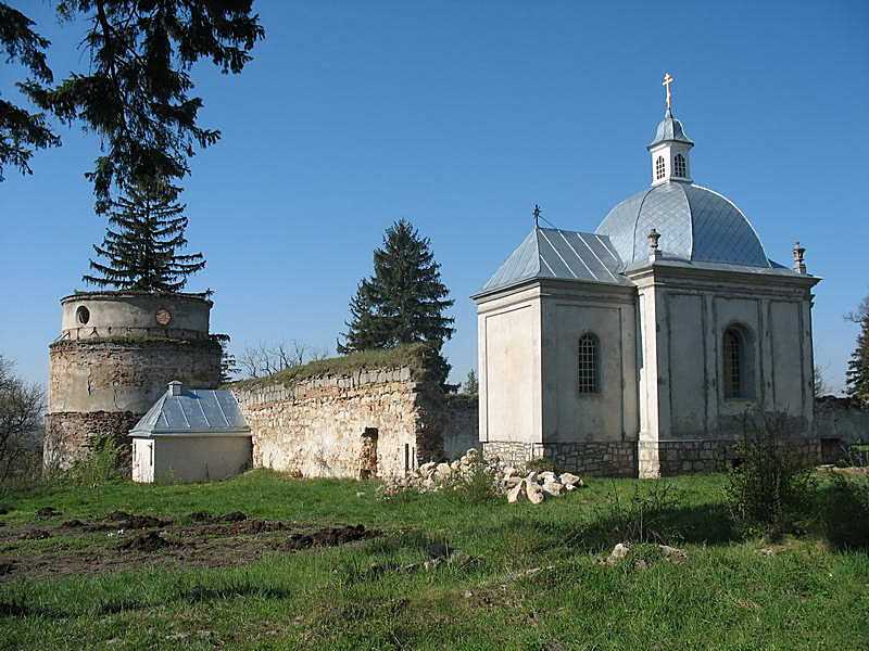 2007 р. Вигляд з північного сходуРозмір зображення: 800:600 піксел Південно-східна башта (11), східний мур і каплиця (14). Фото Зенона Боровця і Богдана Тхора, 27 квітня 2007 р. |
