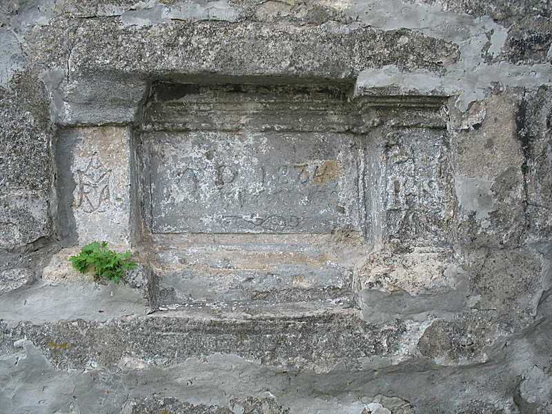 2011 р. Ніша з різьбленою плитоюРозмір зображення: 800:600 піксел Фото Зенона Боровця і Богдана Тхора, 10 серпня 2011 р. На плиті напис: «A D 1834». |