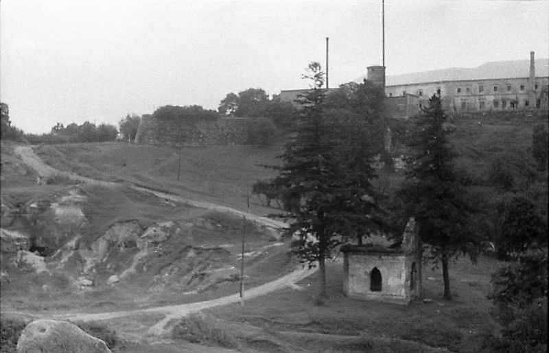 Кар’єр, північно-східний бастіон, корпус келій; ближче – каплиця св.ФадеяРозмір зображення: 800:515 піксел 1988 р. 18 серпня. Фото М.І.Жарких. Негатека, № 471-33. |