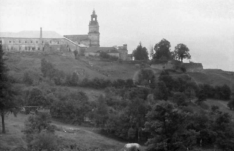 Корпус келій, костел, західний мур і північно-західний бастіонРозмір зображення: 800:518 піксел 1988 р. 18 серпня. Фото М.І.Жарких. Негатека, № 471-34. |