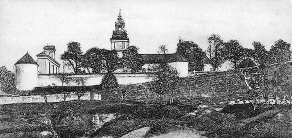 Поч. 20 ст. (?) Загальний вигляд з півдня (2)Розмір зображення: 945:447 піксел Поштівка з підписом німецької та польською мовою, здогадно – з часу перед 1914 р., з альбому «Дубенський форт-застава» |