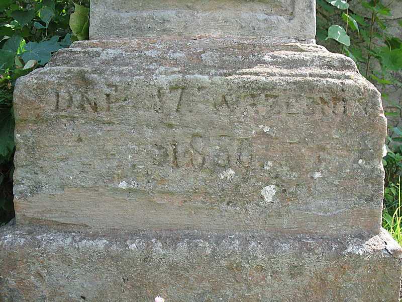 Напис на цкоколіРозмір зображення: 800:600 піксел Фото Зенона Боровця і Богдана Тхора, 10 серпня 2011 р. Напис: «Dnia 17 wrze[snia] 1860 [1880?]». |