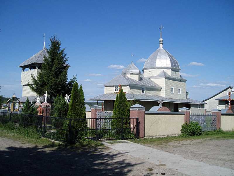 В XVII ст. в селі існував монастир. Парафія отримала привілеї в 1674 та 1703 pp. Теперішня дерев’яна тризрубна одноверха церква з дубових брусів збудована у 1830 р. Четверик її нави переходить у восьмерик, вкритий шоломовою банею зі сліпим ліхтарем і маківкою. У 1988 р. церква розширена добудовами до західної стіни бабинця і вівтаря. У 1897 р. зроблений новий чотириярусний різьблений і золочений іконостас. Поряд з церквою – дерев’яна триярусна стовпова дзвіниця.