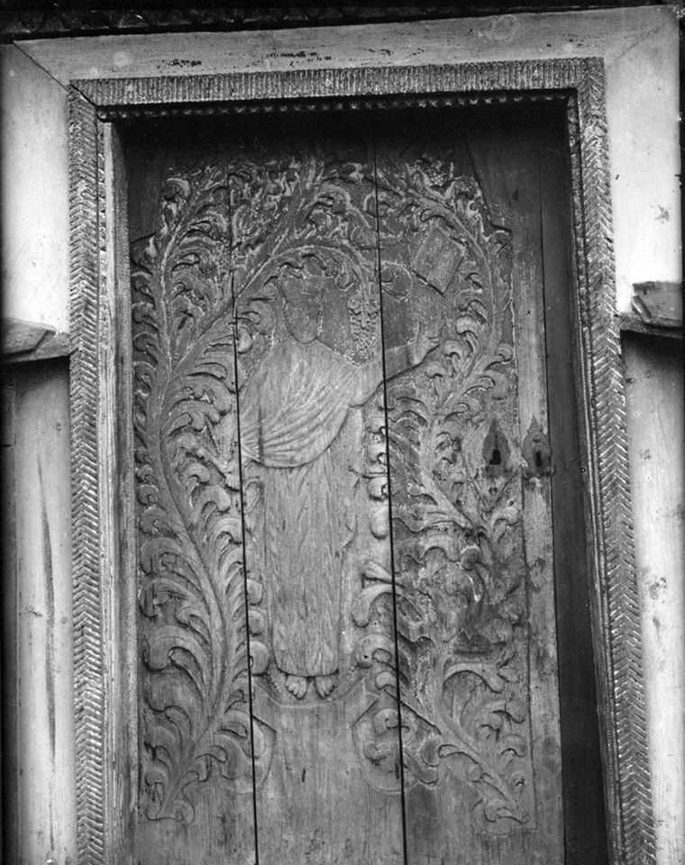 [1920-і рр.?] Різьблені двері церквиРозмір зображення: 760:960 піксел Фото Стефана Таранушенка і Павла Жолтовського з експедиції Харківського музею українського мистецтва. 1920-і рр. (?) Опубліковано 20.02.2019 р. |