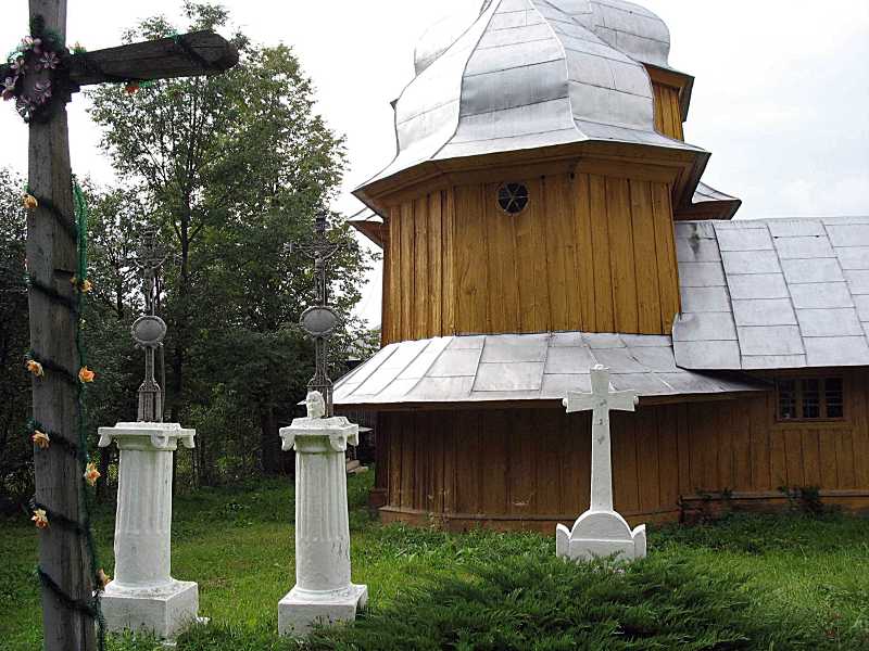 Надгробки на тлі вівтаря церквиРозмір зображення: 800:600 піксел Фото Зенона Боровця і Богдана Тхора, 7 вересня 2006 р. |