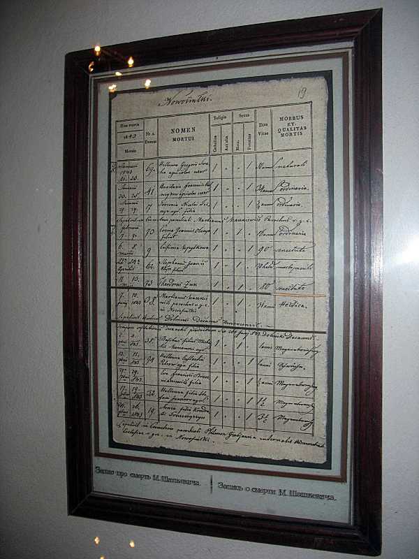 Запис про смерть М. ШашкевичаРозмір зображення: 600:800 піксел Фото Зенона Боровця і Богдана Тхора, 27 жовтня 2007 р. |