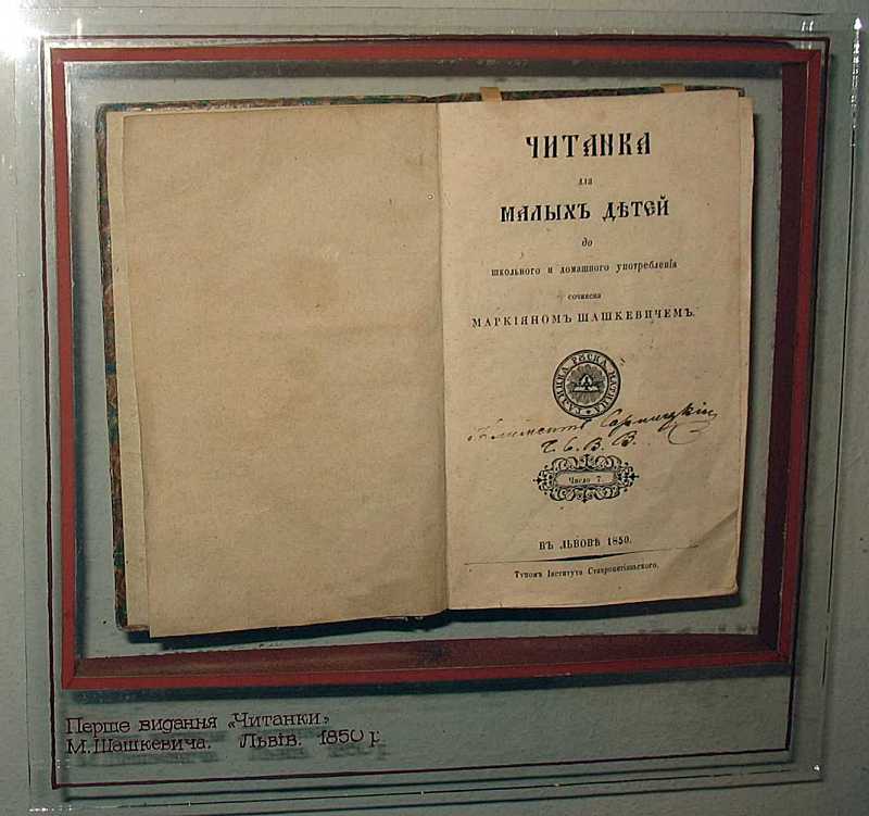 Перше видання «Читанки для малих дітей»Розмір зображення: 800:751 піксел Фото Зенона Боровця і Богдана Тхора, 11 травня 2011 р. Текст читанки на сайті «». |