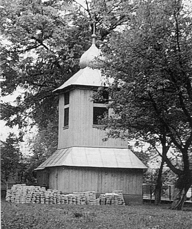 1998 р. Загальний вигляд дзвіниціРозмір зображення: 669:800 піксел Підвиноградів. Дзвіниця церкви св. Юрія. Світлина 1998 р. Джерело: Сирохман М. Церкви України: Закарпаття. – Льв.: 2000 р., с. 369. |