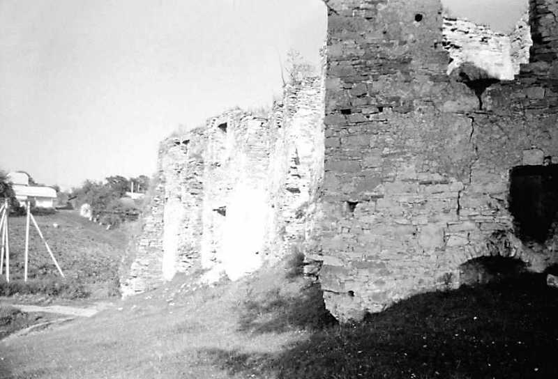 1991 р. Башта 2, палац 3 і фрагмент башти 4. Вигляд з південного заходуРозмір зображення: 800:544 піксел 1991 р. 17 серпня. Фото М.І.Жарких. Негатека, № 723-29. |