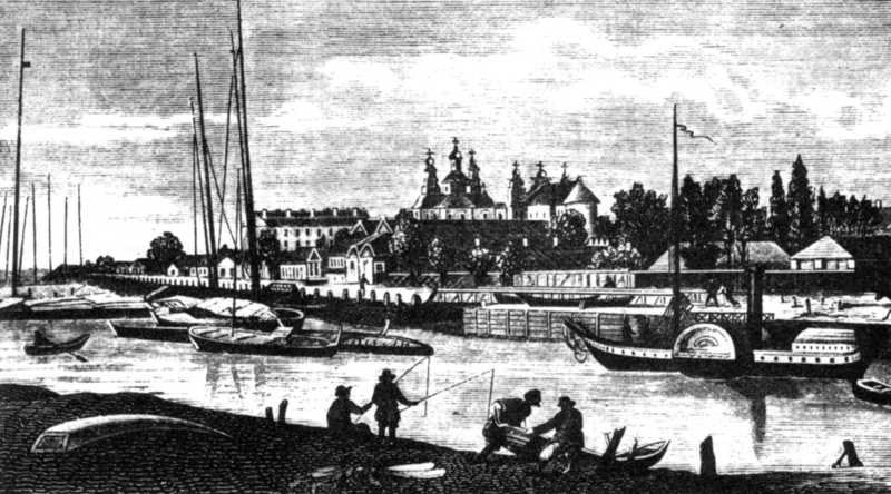 19 ст. ПанорамаРозмір зображення: 800:444 піксел Пинськ. Гравюра XIX ст. Джерело: Пам’ятки України, 2002 р., № 3-4, с. 73. |