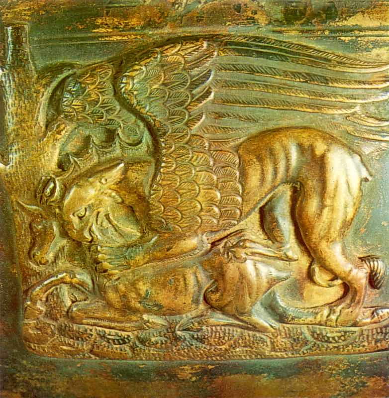 Грифон терзає оленяРозмір зображення: 782:800 піксел Джерело: Античне мистецтво. – К.: Мистецтво, 1977 р., № 54. |