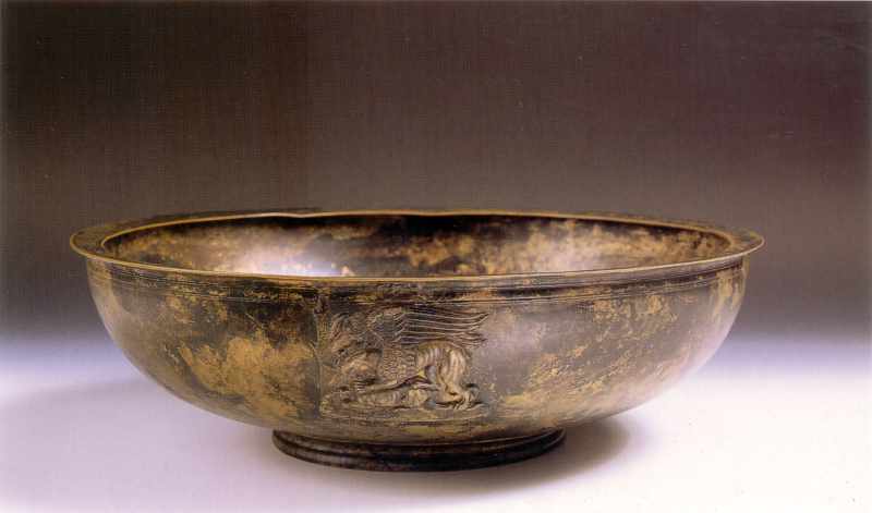 Бронза. Висота 12.5 см, діаметр 44.5 см, об’єм 12.5 л.
