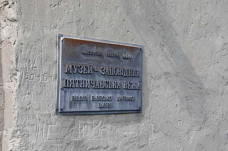 Напис: «Міністерство культури України. Музей-заповідник «П’ятничанська вежа». Відділ Львівської картинної галереї».