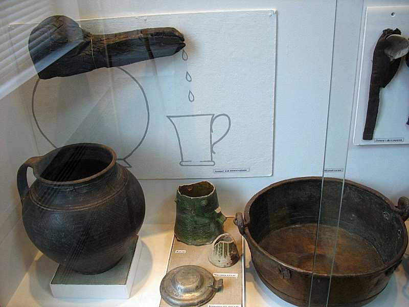 НачинняРозмір зображення: 800:600 піксел Вгорі – врагмент винокурного апарату; внизу – горщик, кухлі. Фото Зенона Боровця, 6 липня 2007 р. |